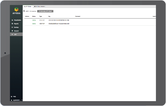 Users with administrative permission settings can update usernames and passwords via the Ayyeka user interface or API.