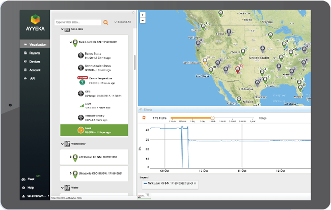 Our web interface for managing data and Wavelet fleets. Whether you manage ten Wavelets or ten thousand, the Ayyeka Data Hub makes obtaining a birdseye view of remote monitoring systems easy and intuitive. The Hub features five main methods of managing your Wavelet fleet and accessing your data. These are: